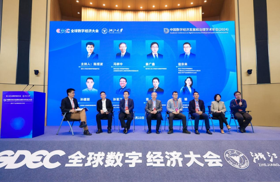在后续的圆桌论坛环节,清华大学经济管理学院党委书记陈煜波主持,西安交通大学管理学院院长,过程管理与效率工程教育部重点实验室主任冯耕中,哈尔滨工业大学经济与管理学院教授姜广鑫,复旦大学经济学院副院长、中国社会主义市场经济研究中心副主任、复旦大学产业发展研究中心主任寇宗来,海南省大数据管理局副局长孙建明,阿里巴巴集团原副总裁、浙江大学光华法学院研究员孙军工,浙江大学经济学院百人计划研究员袁哲,浙江大学传媒与国际文化学院副院长、广播电影电视研究所所长赵瑜等围绕数字经济、技术创新以及企业发展等问题展开讨论。